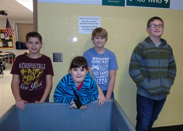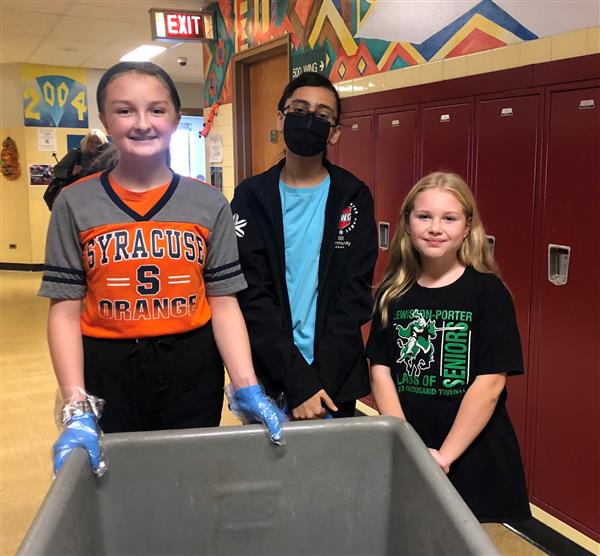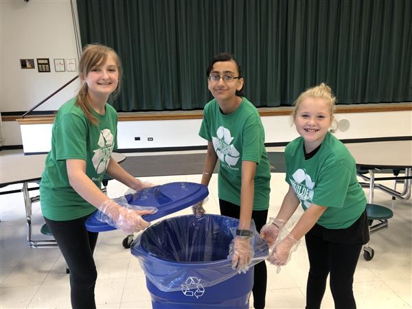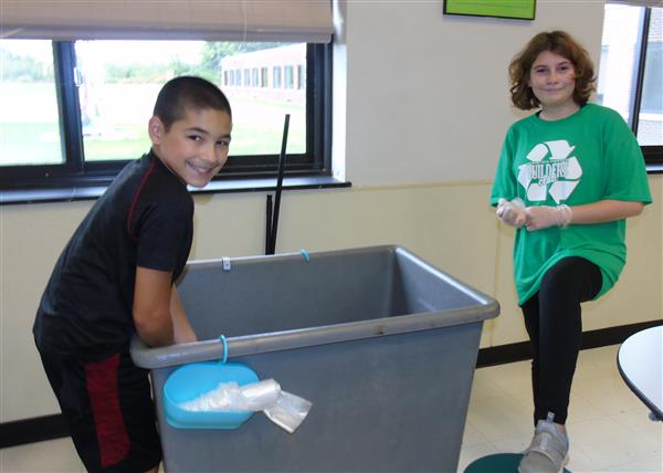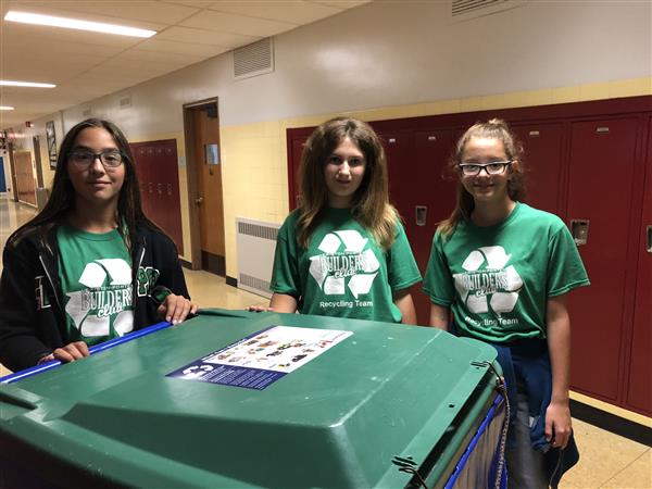 Builders Club volunteers collect classroom recycling every Tuesday